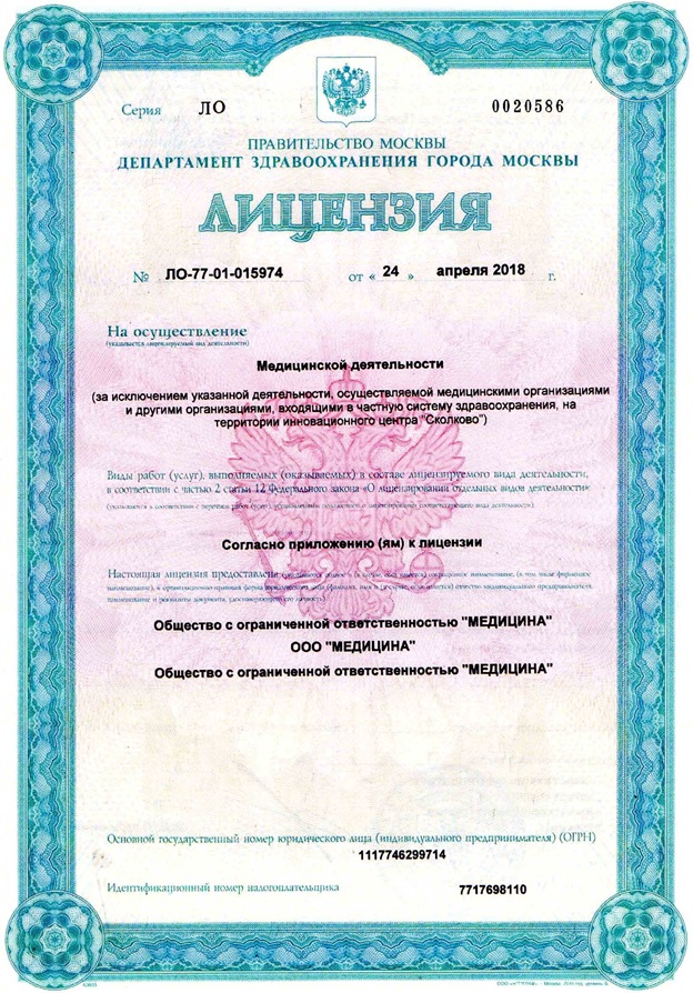 ООО «МЕДИЦИНА» не несет ответственности за возможные негативные последствия, возникшие в результате использования информации, размещенной на сайте. Не занимайтесь самолечением! Обратитесь к специалистам!
